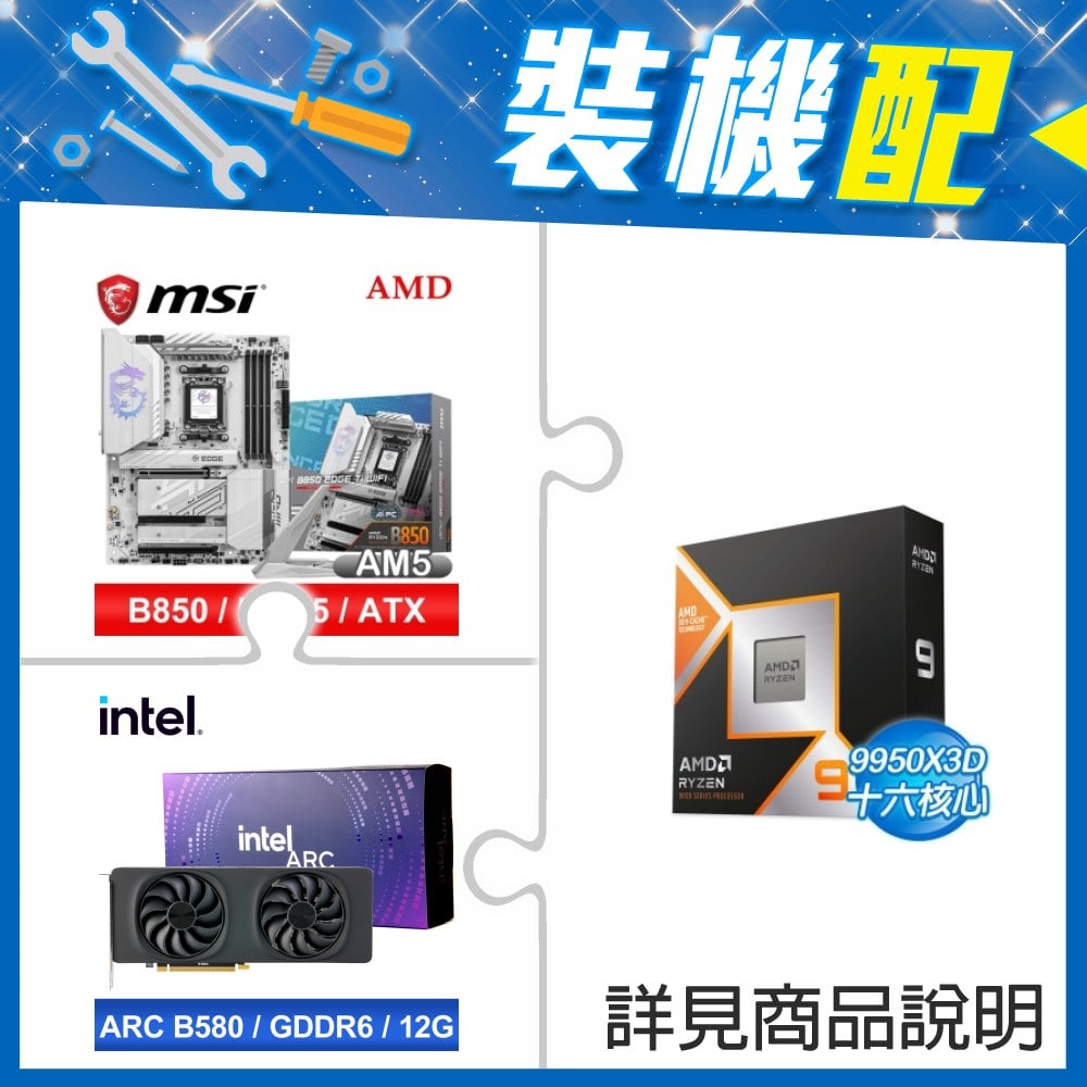 ☆裝機配★ AMD R9 9950X3D+微星 MPG B850 EDGE TI WIFI ATX主機板+Intel Arc B580 12G 20 Core 顯示卡