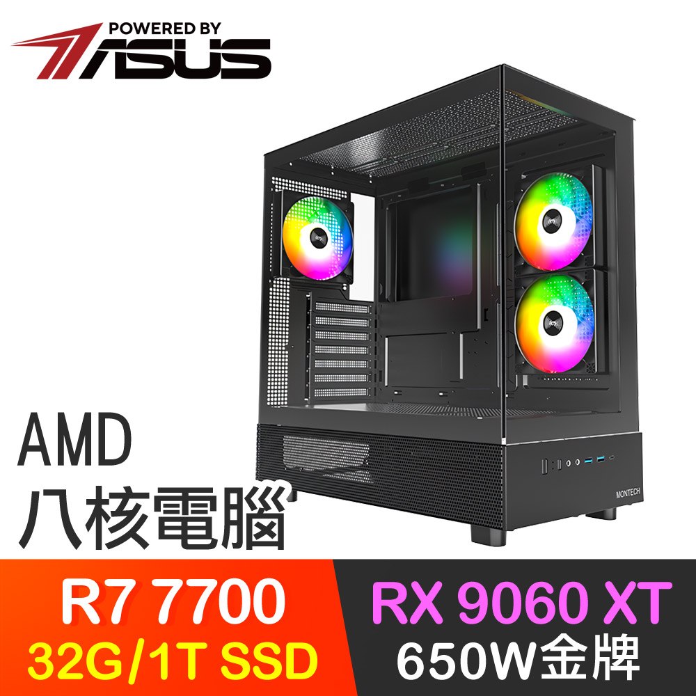 華碩系列【明月照大江】R7 7700八核 RX9060XT 電腦主機(32G/1TB SSD)
