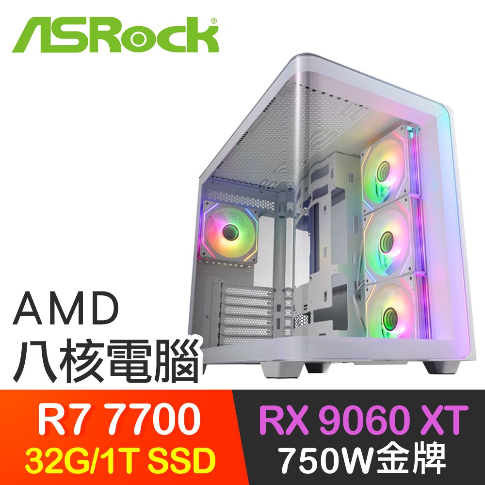 華擎系列【白首太玄經】R7 7700八核 RX9060XT 電腦主機(32G/1TB SSD)