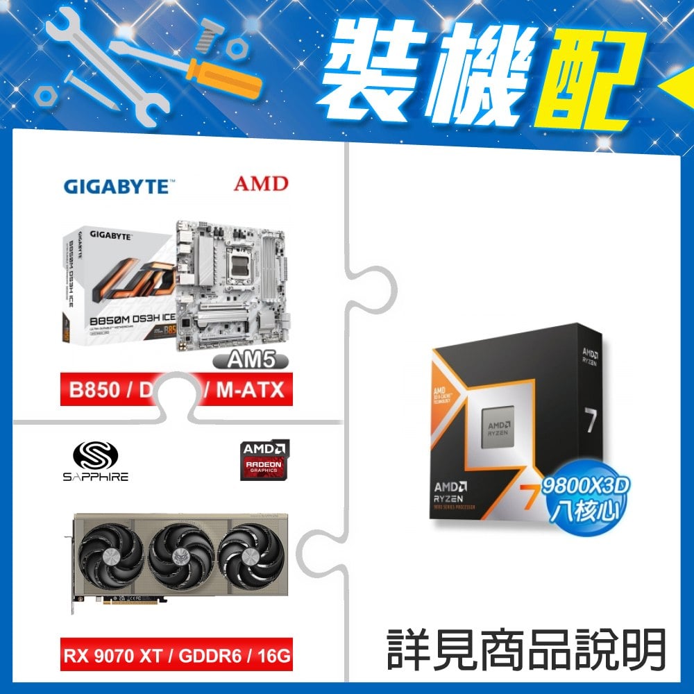 ☆裝機配★ AMD R7 9800X3D+技嘉 B850M DS3H ICE M-ATX主機板+藍寶石 NITRO+ 氮動 RX 9070 XT GAMING OC 16GB 顯示卡
