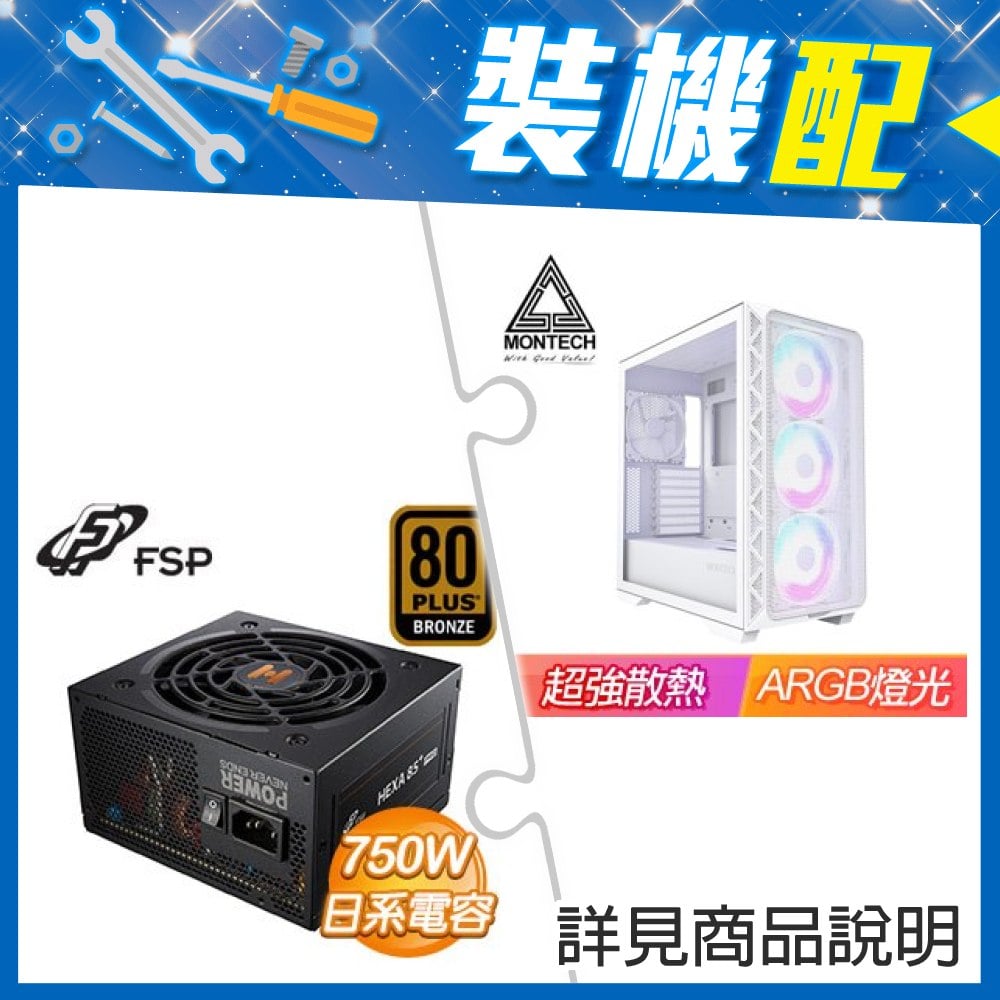 ☆裝機配★ MONTECH【KING 95 PRO】分艙設計 全景玻璃 ATX機殼《白》+全漢 HEXA 85+ PRO GEN5 750W 銅牌 ATX3.0(PCIe 5.0)