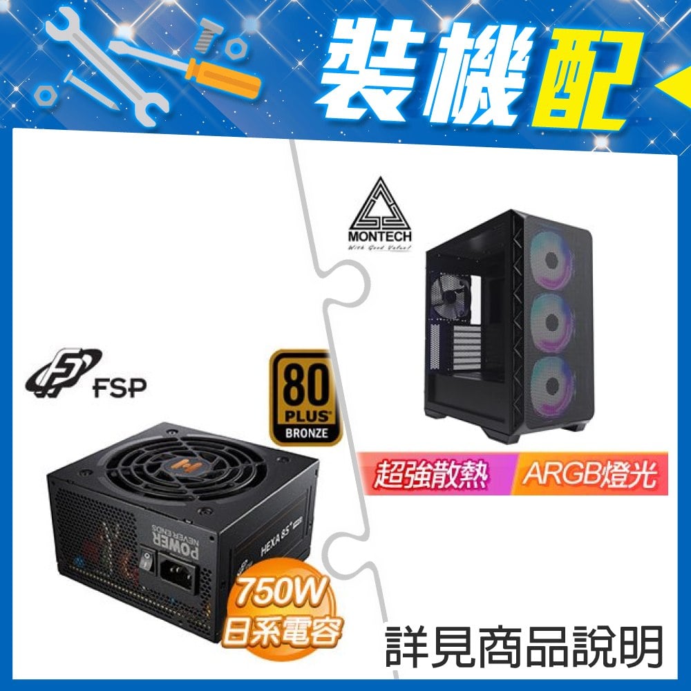 ☆裝機配★ MONTECH【AIR 903 MAX】玻璃透側 E-ATX機殼《黑》+全漢 HEXA 85+ PRO GEN5 750W 銅牌 ATX3.0(PCIe 5.0)