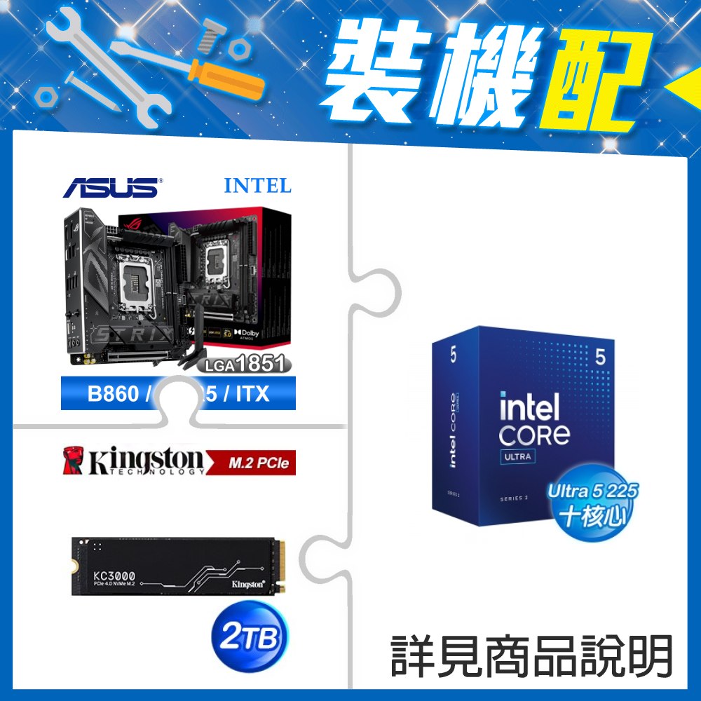 ☆裝機配★ Core U5 225F+華碩 ROG STRIX B860-I GAMING WIFI D5 ITX主機板+金士頓 KC3000 2TB PCIe 4.0 NVMe M.2 SSD