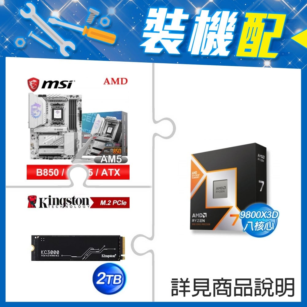 ☆裝機配★ AMD R7 9800X3D+微星 MPG B850 EDGE TI WIFI ATX主機板+金士頓 KC3000 2TB PCIe 4.0 NVMe M.2 SSD