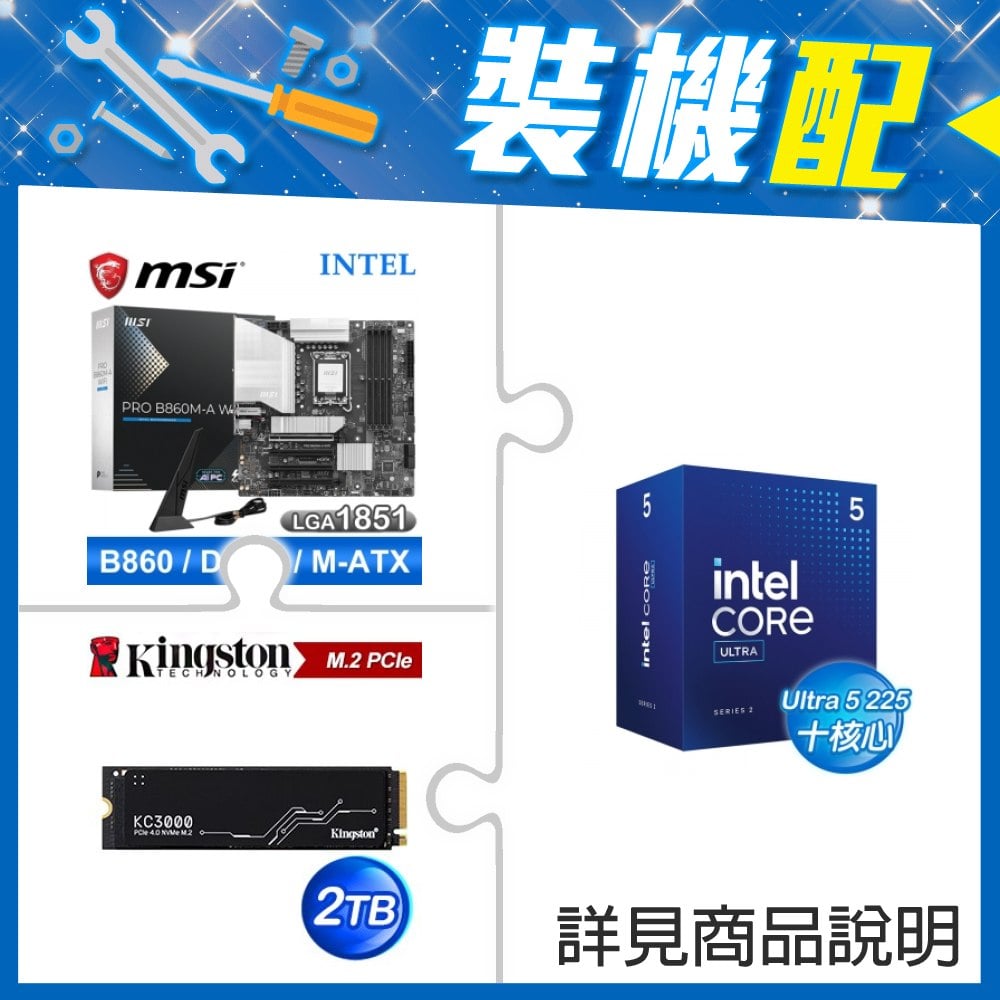 ☆裝機配★ Core U5 225F+微星 PRO B860M-A WIFI D5 MATX主機板+金士頓 KC3000 2TB PCIe 4.0 NVMe M.2 SSD