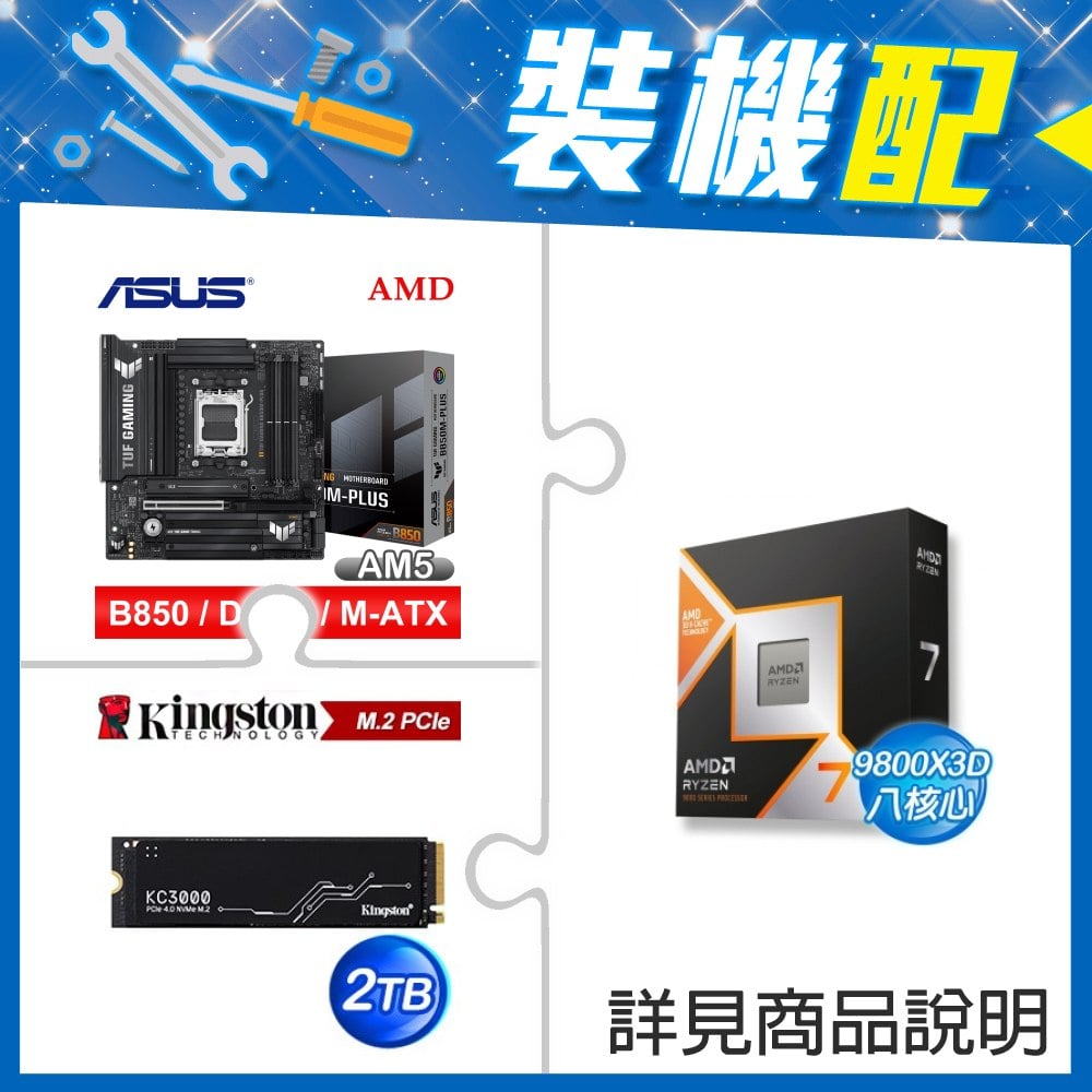 ☆裝機配★ AMD R7 9800X3D+華碩 TUF GAMING B850M-PLUS WIFI MATX主機板+金士頓 KC3000 2TB PCIe 4.0 NVMe M.2 SSD