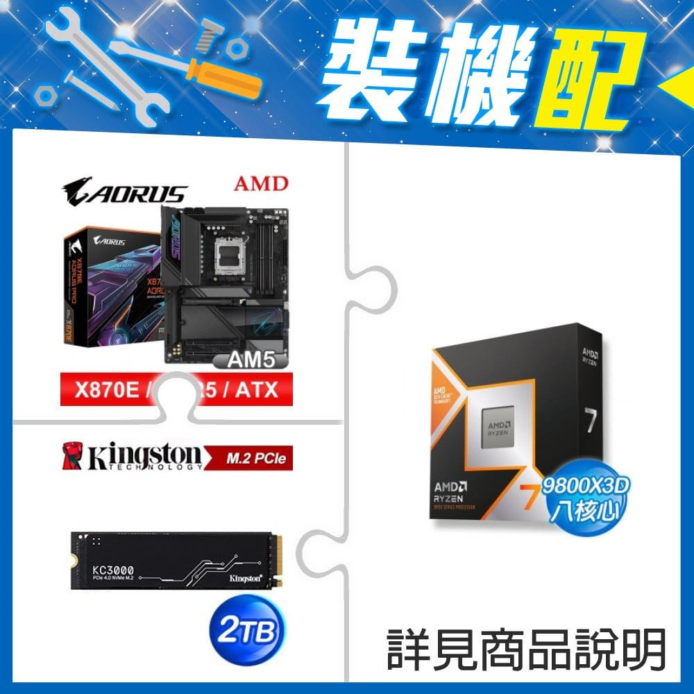 ☆裝機配★ AMD R7 9800X3D+技嘉 X870E AORUS PRO ATX主機板+金士頓 KC3000 2TB PCIe 4.0 NVMe M.2 SSD