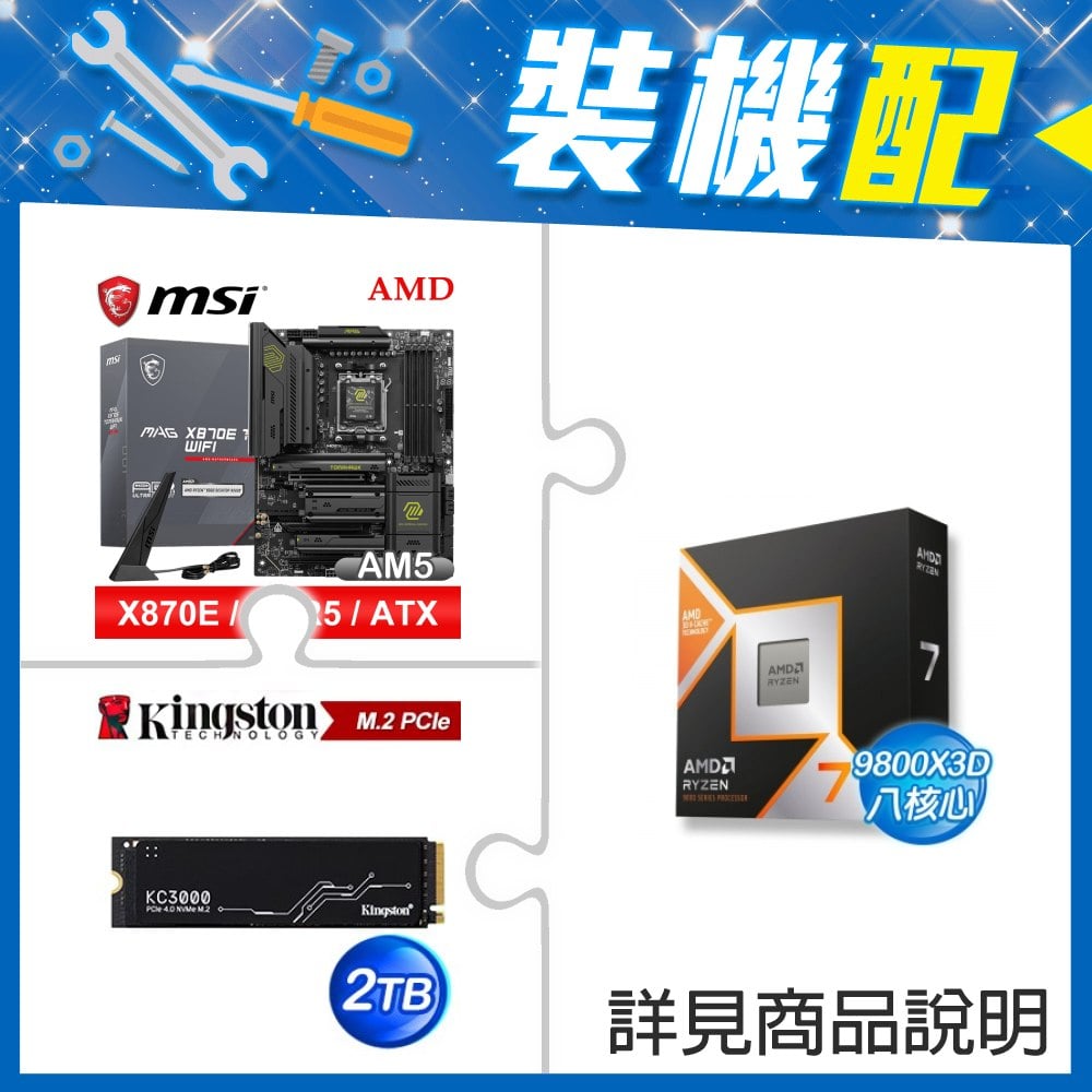 ☆裝機配★ AMD R7 9800X3D+微星 MAG X870E TOMAHAWK WIFI ATX主機板+金士頓 KC3000 2TB PCIe 4.0 NVMe M.2 SSD