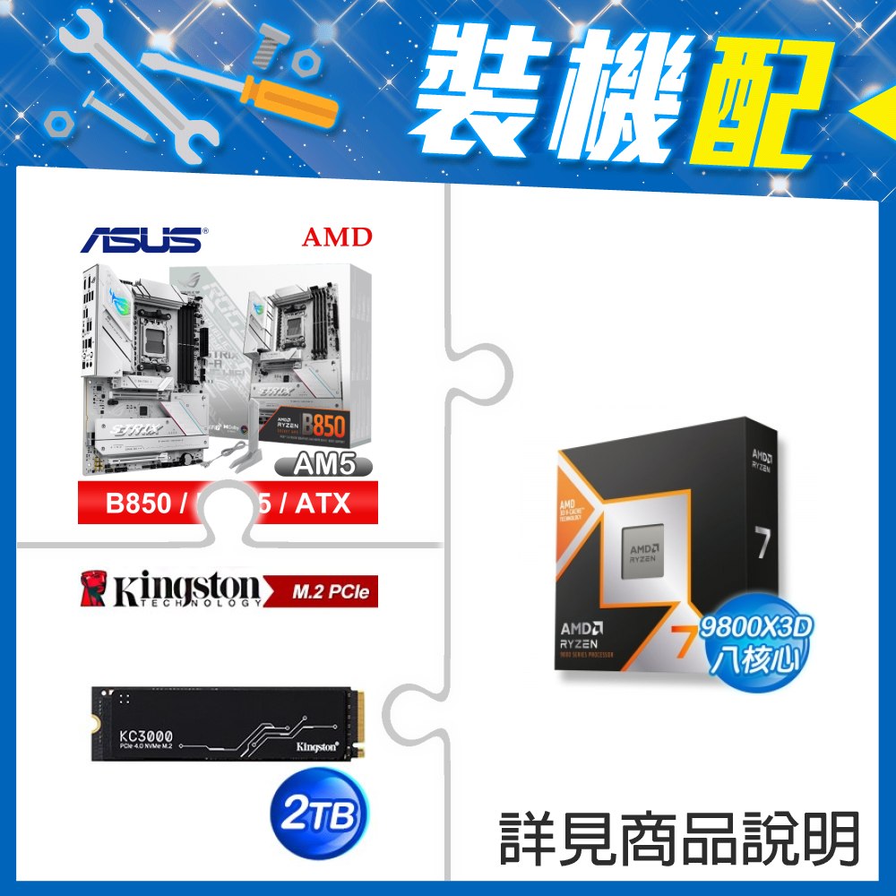 ☆裝機配★ AMD R7 9800X3D+華碩 ROG STRIX B850-F GAMING WIFI ATX主機板+金士頓 KC3000 2TB PCIe 4.0 NVMe M.2 SSD