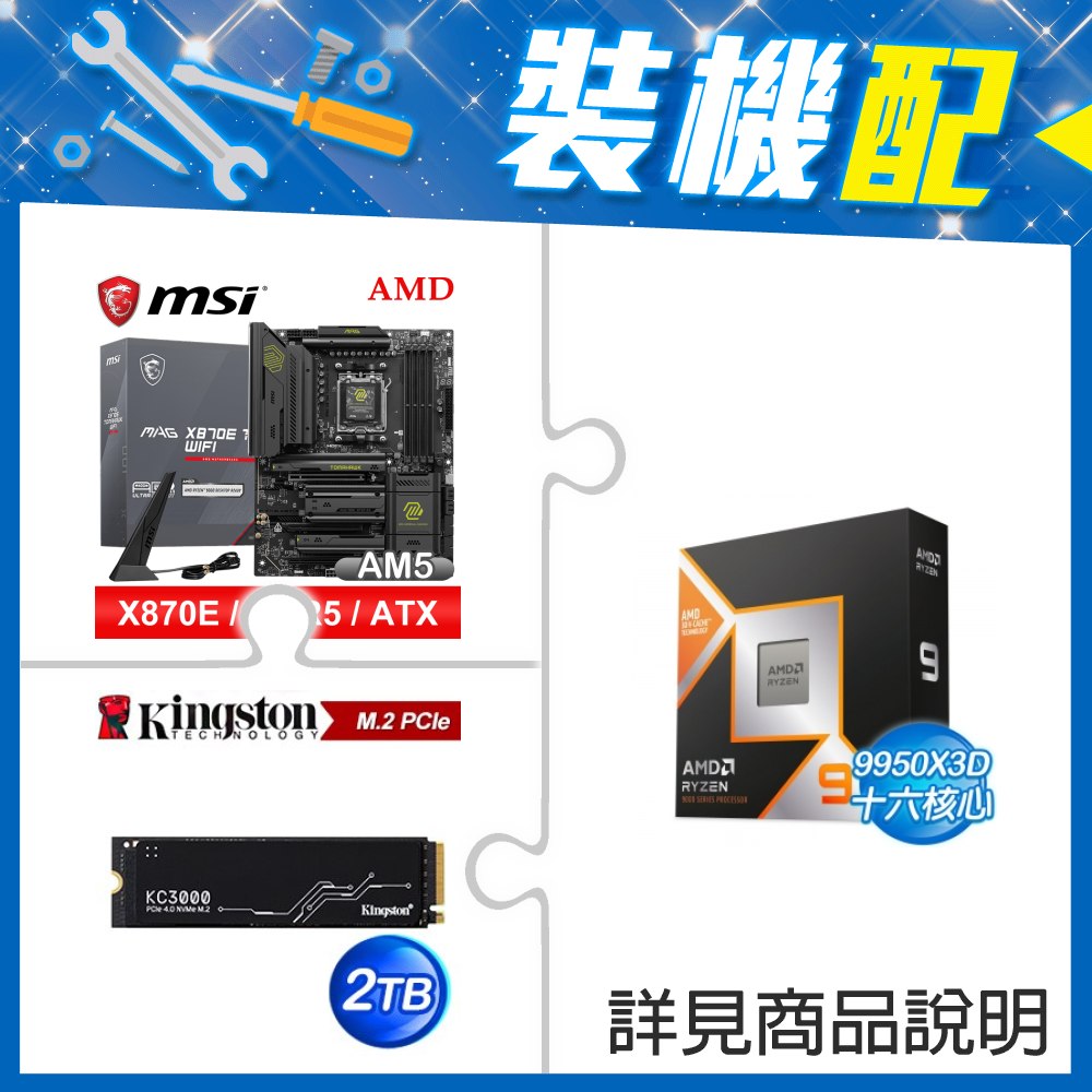 ☆裝機配★ AMD R9 9950X3D+微星 MAG X870E TOMAHAWK WIFI ATX主機板+金士頓 KC3000 2TB PCIe 4.0 NVMe M.2 SSD