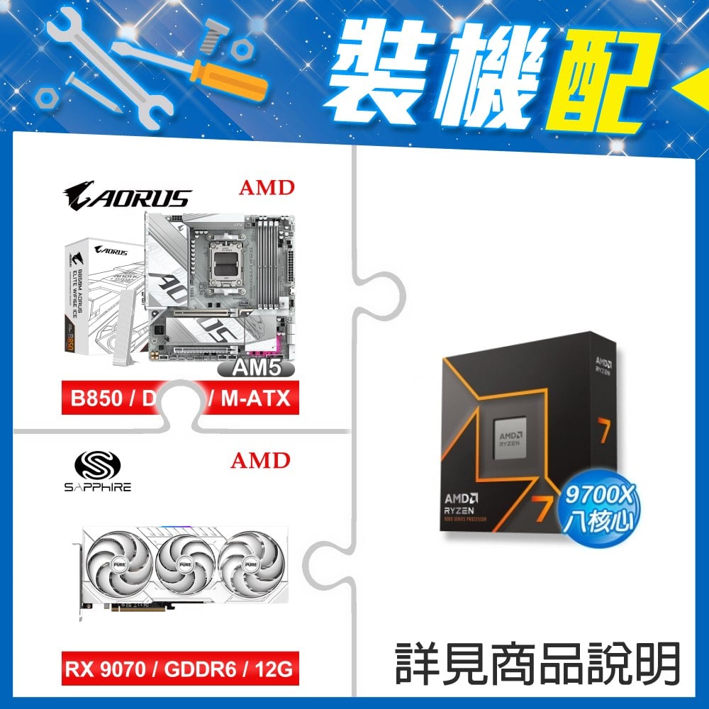 ☆裝機配★ AMD R7 9700X+技嘉 B850M AORUS ELITE WIFI6E ICE M-ATX主機板+藍寶石 PURE 極地 RX 9070 GRE GAMING OC 12GB 顯示卡