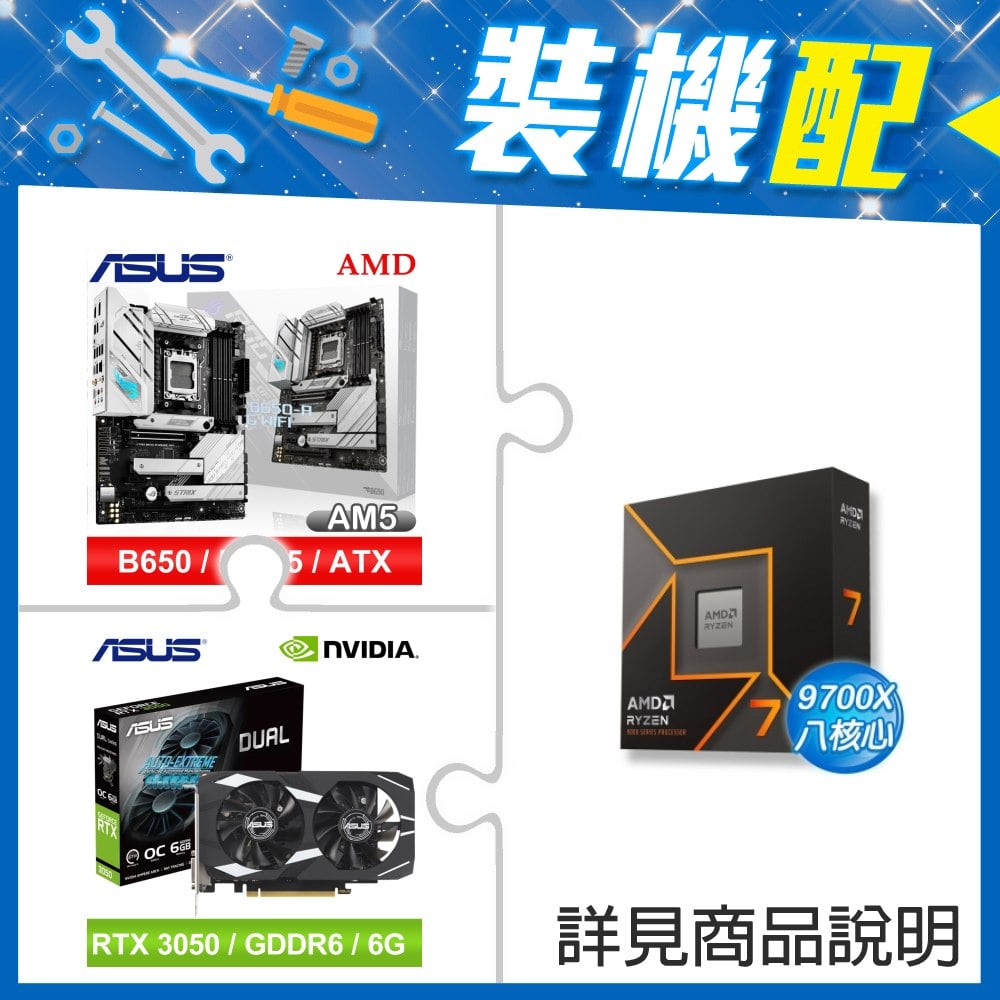 ☆裝機配★ AMD R7 9700X+華碩 ROG STRIX B650-A GAMING WIFI ATX主機板+華碩 DUAL-RTX3050-O6G 顯示卡