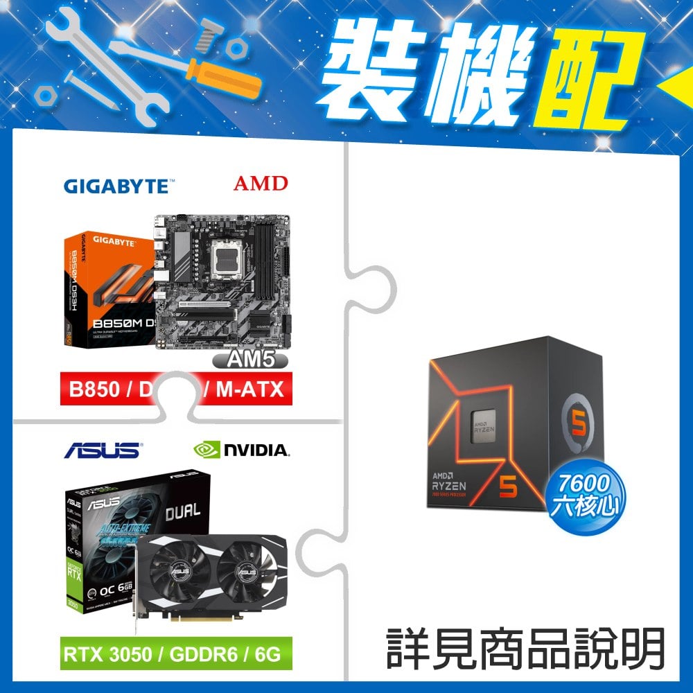 ☆裝機配★ AMD R5 7600+技嘉 B850M DS3H MATX主機板+華碩 DUAL-RTX3050-O6G 顯示卡