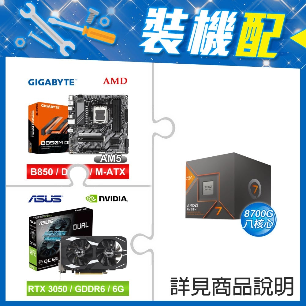 ☆裝機配★ AMD R7 8700G+技嘉 B850M DS3H MATX主機板+華碩 DUAL-RTX3050-O6G 顯示卡