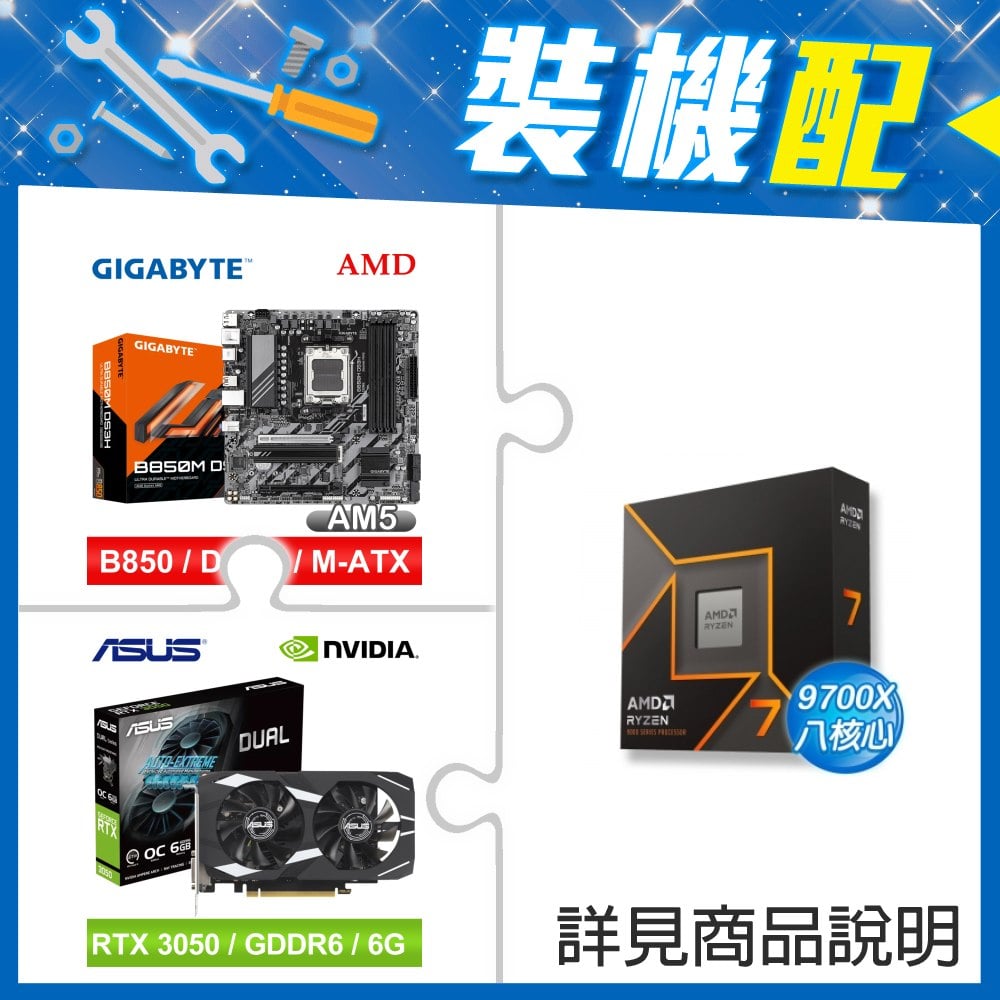 ☆裝機配★ AMD R7 9700X+技嘉 B850M DS3H MATX主機板+華碩 DUAL-RTX3050-O6G 顯示卡