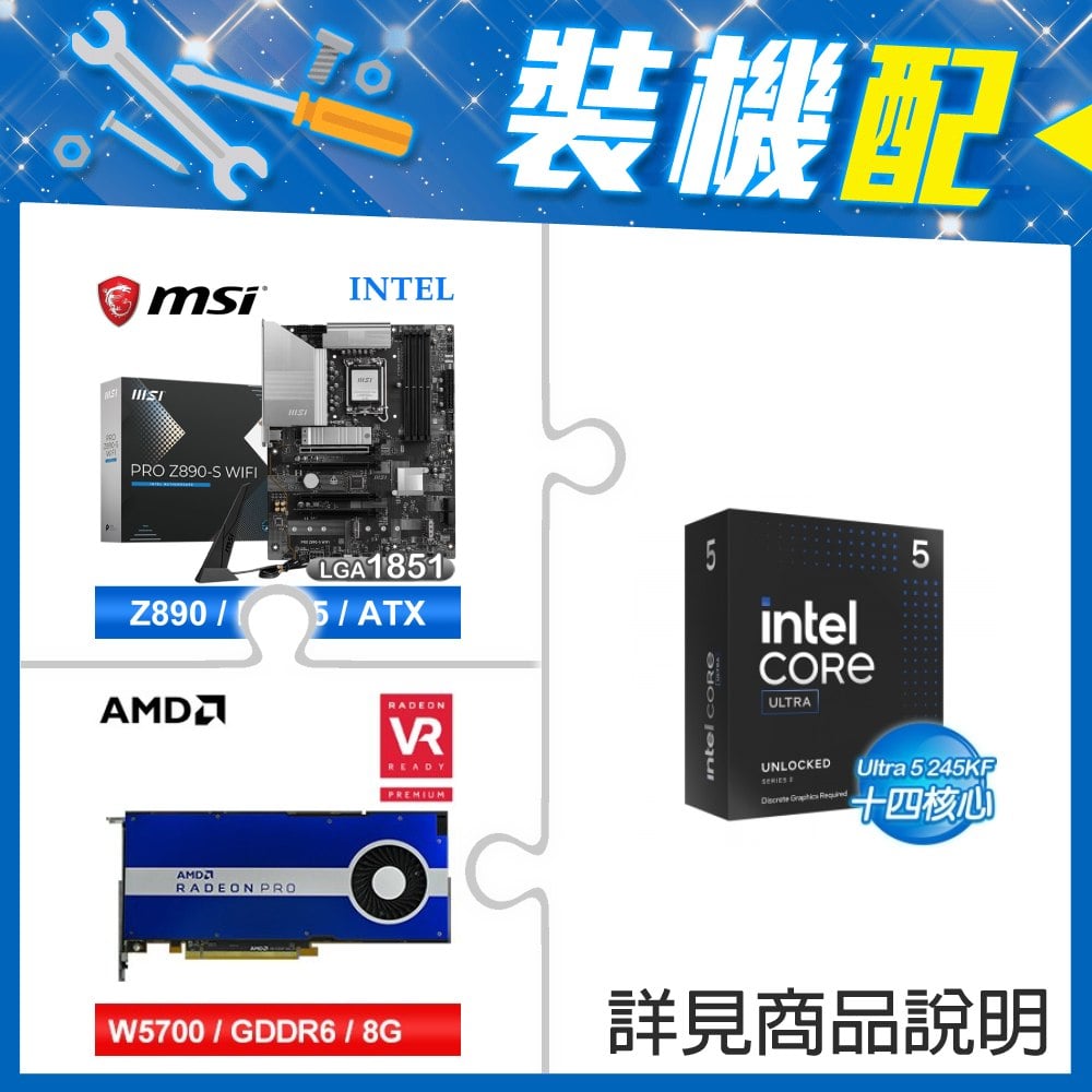 ☆裝機配★ Core U5 245KF+微星 PRO Z890-S WIFI D5 ATX主機板+AMD RadeonPro W5700 8G 256bit專業繪圖卡