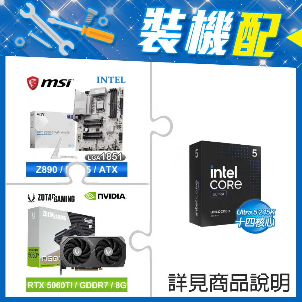 ☆裝機配★ Core U5 245KF+微星 PRO Z890-S WIFI WHITE D5 ATX主機板+索泰 RTX 5060 TI 8GB Twin Edge OC 顯示卡