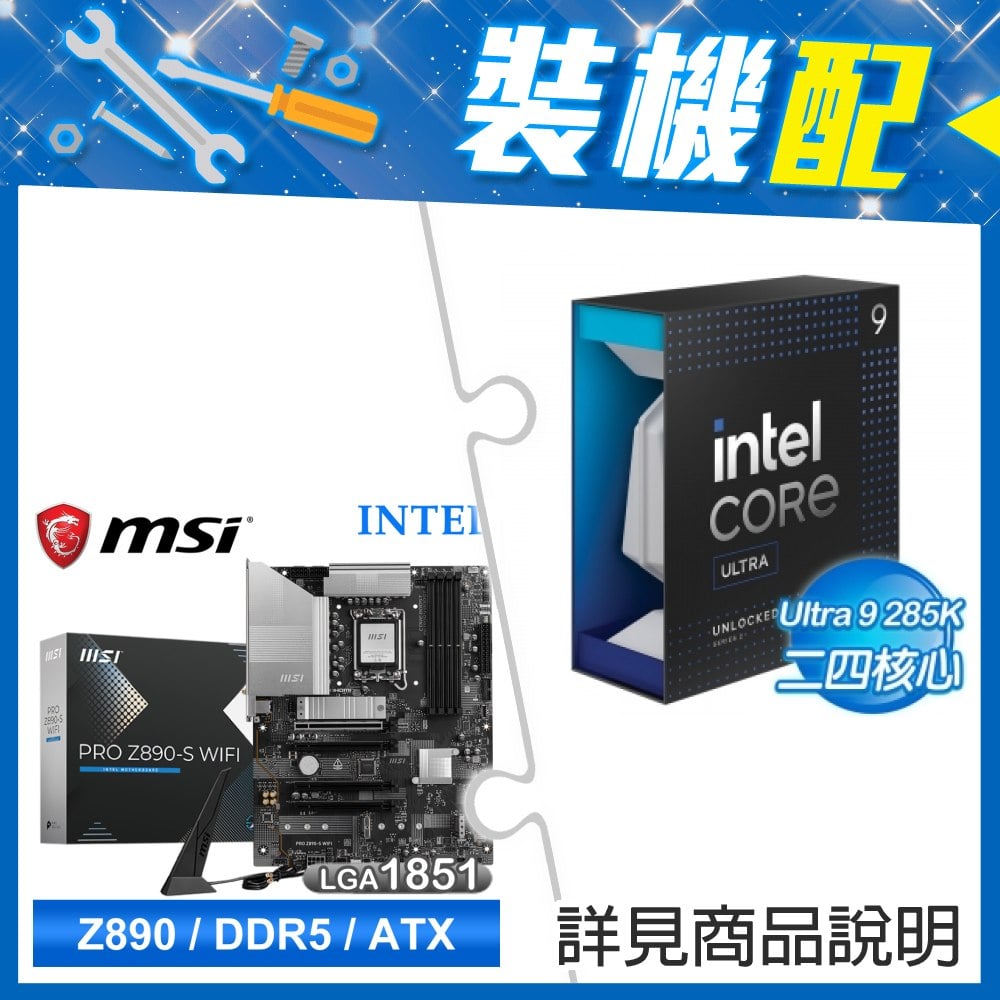 ☆裝機配★ Core U9 285K+微星 PRO Z890-S WIFI D5 ATX主機板