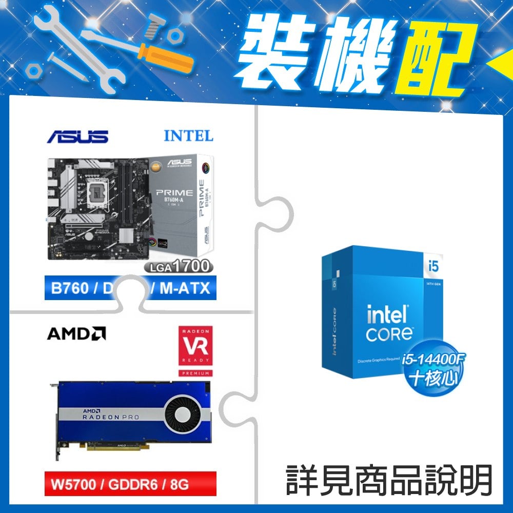 ☆裝機配★ i5-14400F+華碩 PRIME B760M-A-CSM D5 M-ATX主機板+AMD RadeonPro W5700 8G 256bit專業繪圖卡