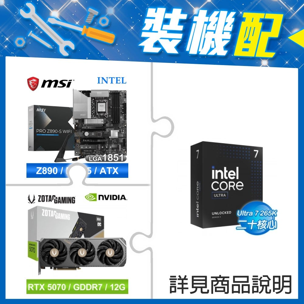 ☆裝機配★ Core U7 265KF+微星 PRO Z890-S WIFI D5 ATX主機板+索泰 RTX 5070 SOLID OC 12G 顯示卡