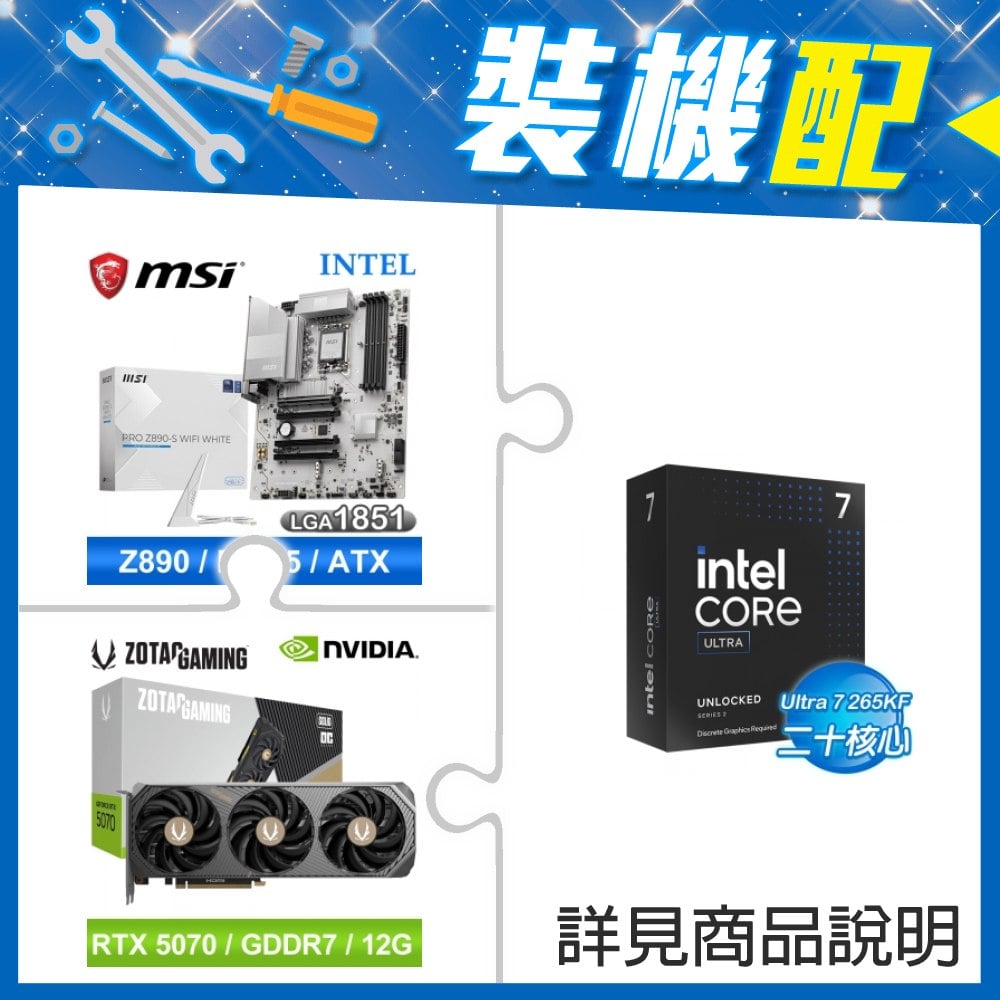 ☆裝機配★ Core U7 265KF+微星 PRO Z890-S WIFI WHITE D5 ATX主機板+索泰 RTX 5070 SOLID OC 12G 顯示卡