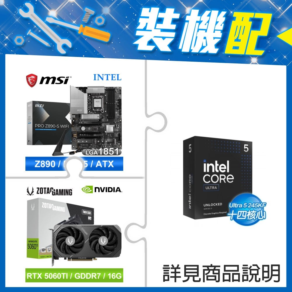 ☆裝機配★ Core U5 245KF+微星 PRO Z890-S WIFI D5 ATX主機板+索泰 RTX 5060 TI 16GB Twin Edge OC 顯示卡