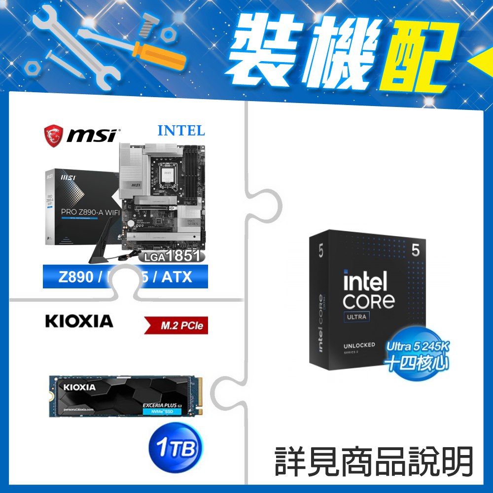 ☆裝機配★ Core U5 245KF+微星 PRO Z890-A WIFI D5 ATX主機板+鎧俠 EXCERIA PLUS G3 1TB PCIe Gen4x4 SSD