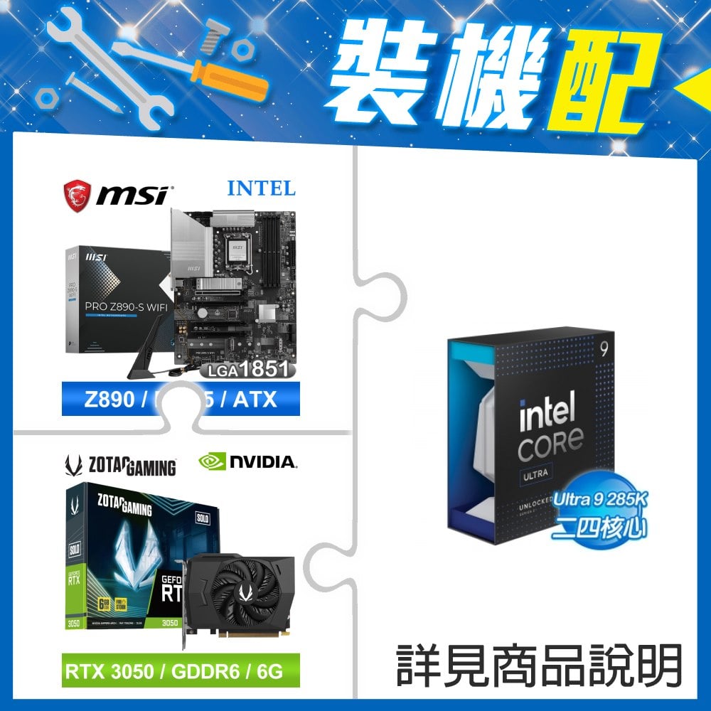 ☆裝機配★ Core U9 285K+微星 PRO Z890-S WIFI D5 ATX主機板+ZOTAC RTX3050 6G GDDR6 Solo 顯示卡