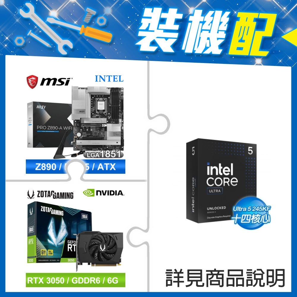 ☆裝機配★ Core U5 245KF+微星 PRO Z890-A WIFI D5 ATX主機板+ZOTAC RTX3050 6G GDDR6 Solo 顯示卡