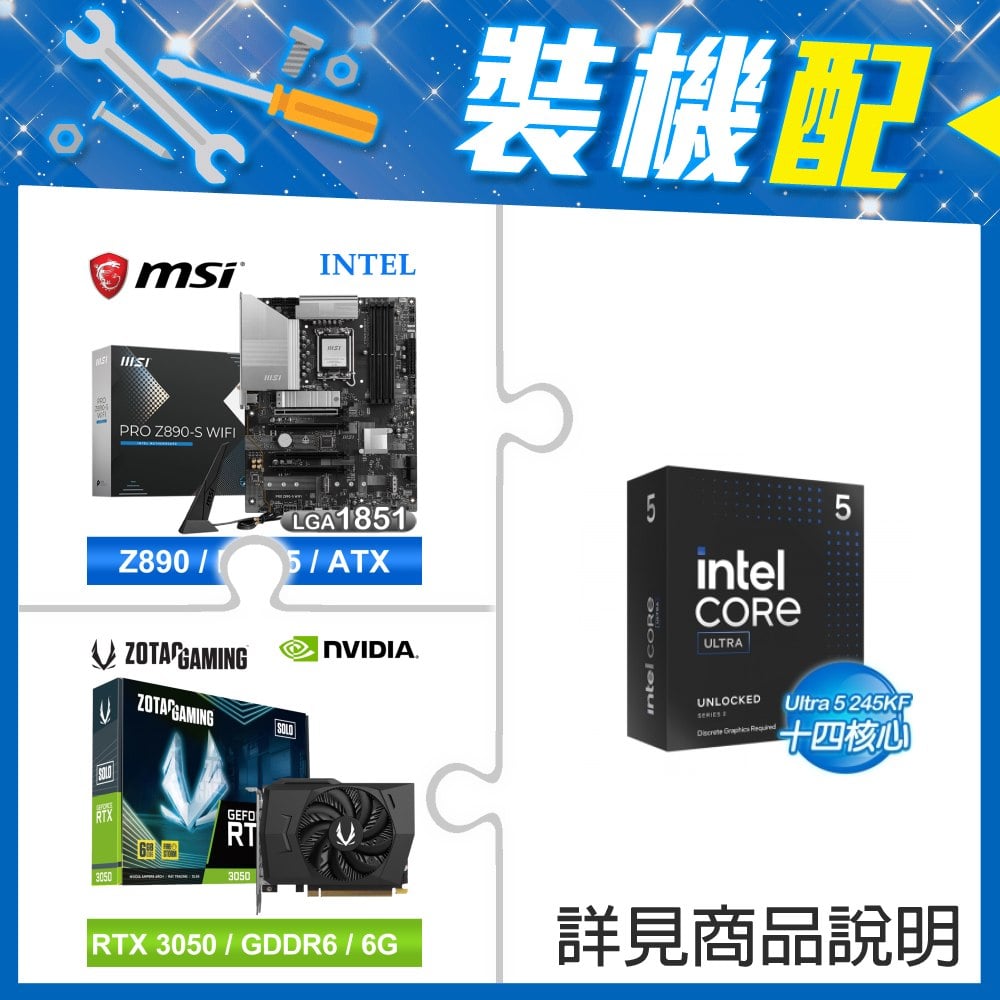 ☆裝機配★ Core U5 245KF+微星 PRO Z890-A WIFI D5 ATX主機板+ZOTAC RTX3050 6G GDDR6 Solo 顯示卡