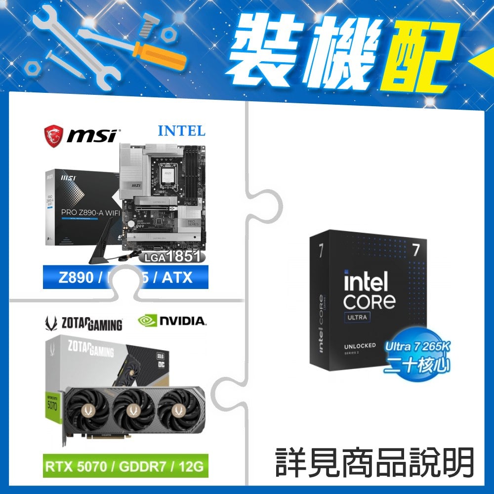 ☆裝機配★ Core U7 265K+微星 PRO Z890-A WIFI D5 ATX主機板+索泰 RTX 5070 SOLID OC 12G 顯示卡