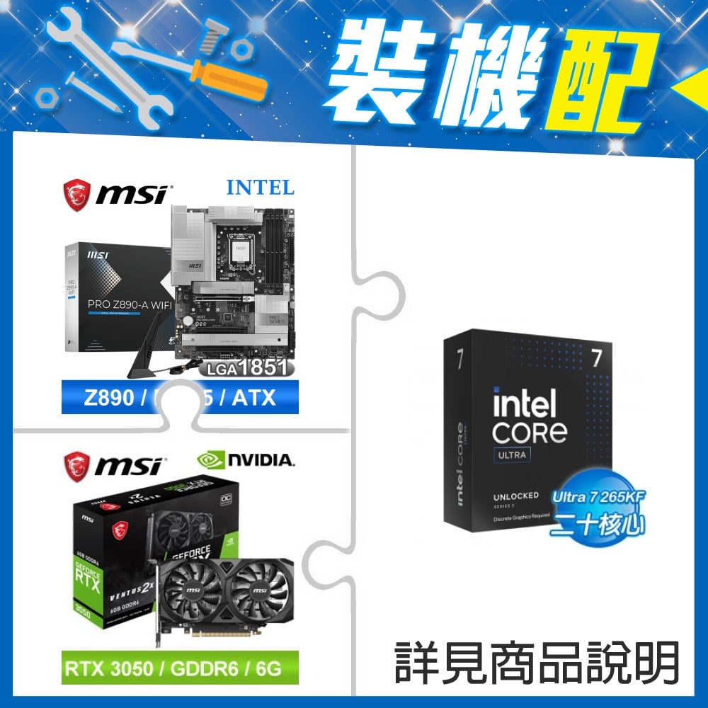 ☆裝機配★ Core U7 265KF+微星 PRO Z890-A WIFI D5 ATX主機板+微星 RTX 3050 VENTUS 2X 6G OC 顯示卡