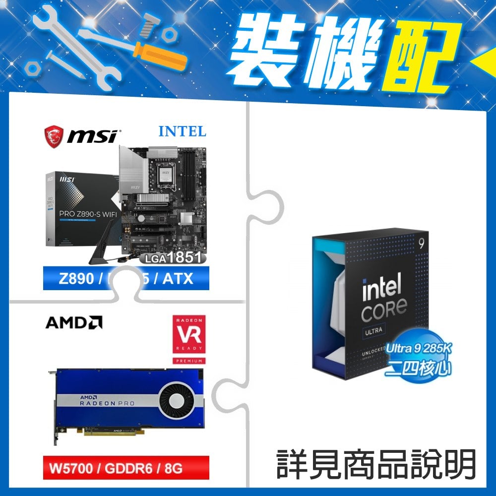 ☆裝機配★ Core U9 285K+微星 PRO Z890-S WIFI D5 ATX主機板+AMD RadeonPro W5700 8G 256bit專業繪圖卡