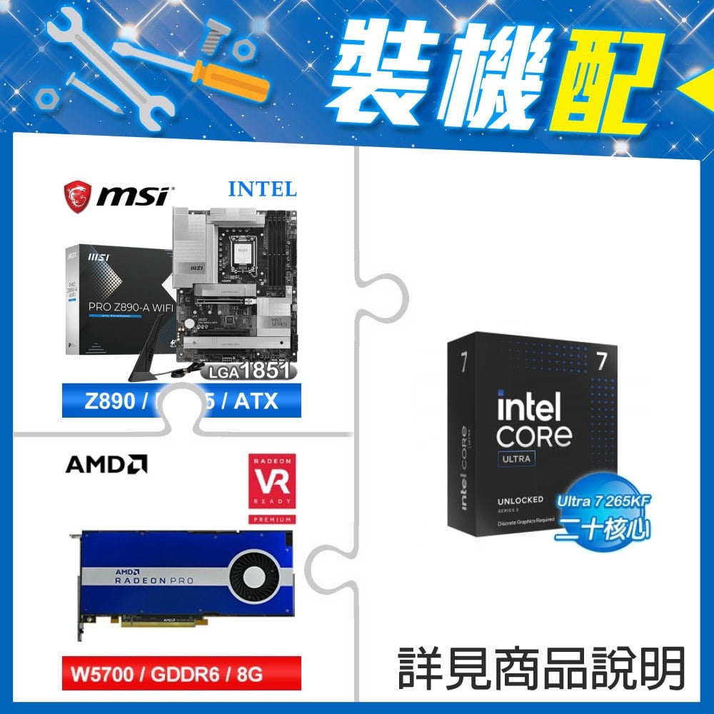 ☆裝機配★ Core U7 265KF+微星 PRO Z890-A WIFI D5 ATX主機板+AMD RadeonPro W5700 8G 256bit專業繪圖卡