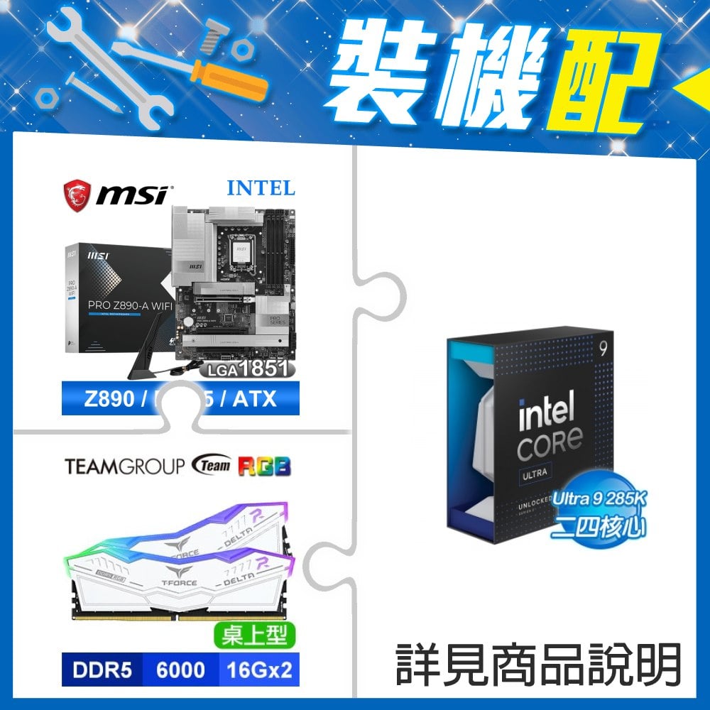 ☆裝機配★ Core U9 285K+微星 PRO Z890-A WIFI D5 ATX主機板+十銓 T-FORCE DELTA RGB DDR5-6000 16G*2 CL30 記憶體《白》