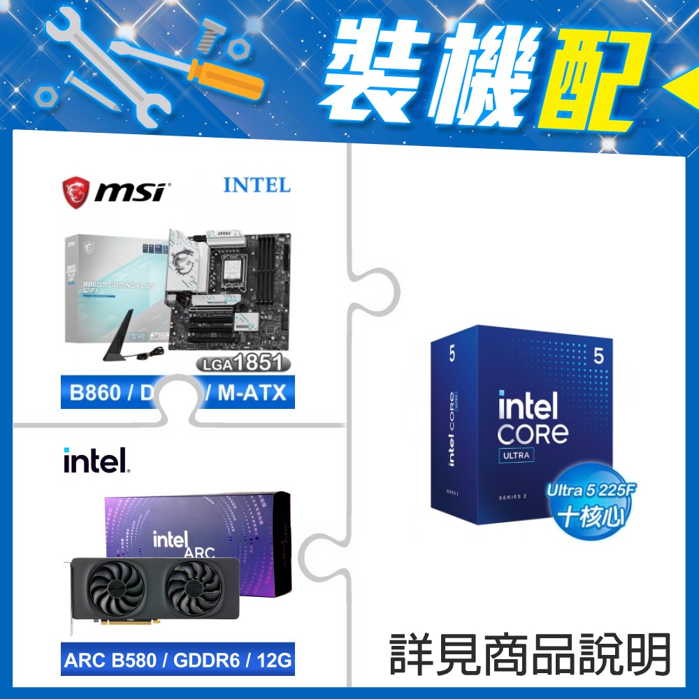 ☆裝機配★ Core U5 225F+微星 B860M GAMING PLUS WIFI D5 MATX主機板+Intel Arc B580 12G 20 Core 顯示卡