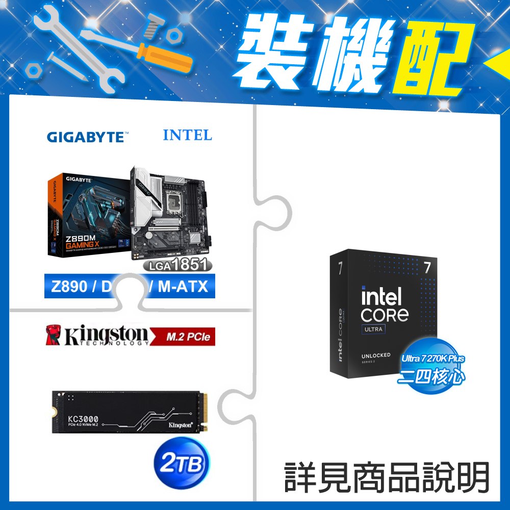 ☆裝機配★ Ultra7 270K Plus+技嘉 Z890M GAMING X D5 MATX主機板+金士頓 KC3000 2TB PCIe 4.0 NVMe M.2 SSD