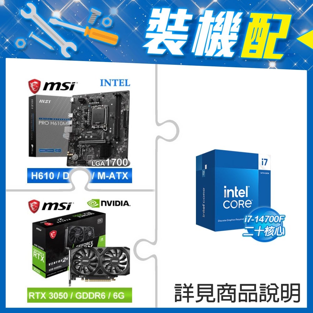 ☆裝機配★ i7-14700F+微星 PRO H610M-S D4 M-ATX主機板+微星 RTX 3050 VENTUS 2X 6G OC 顯示卡