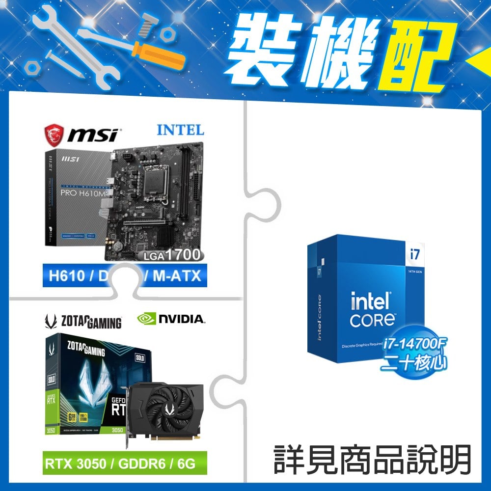 ☆裝機配★ i7-14700F+微星 PRO H610M-S D4 M-ATX主機板+ZOTAC RTX3050 6G GDDR6 Solo 顯示卡
