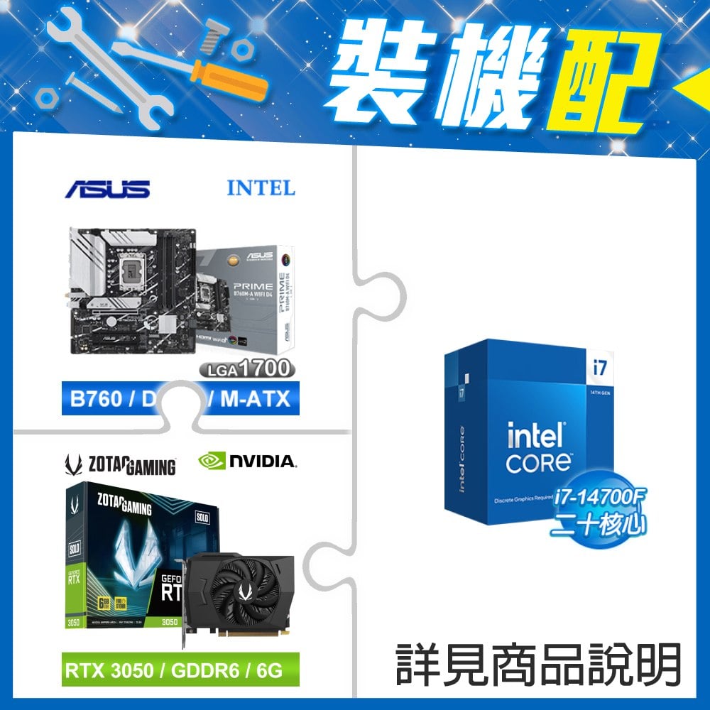 ☆裝機配★ i7-14700F+華碩 PRIME B760M-A WIFI-CSM D5 M-ATX主機板+ZOTAC RTX3050 6G GDDR6 Solo 顯示卡