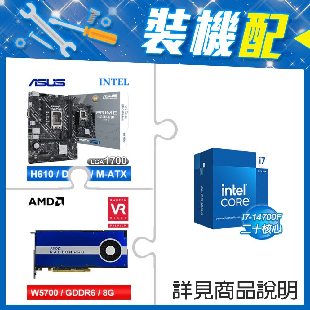 ☆裝機配★ i7-14700F+華碩 PRIME H610M-K D4-CSM M-ATX主機板+AMD RadeonPro W5700 8G 256bit專業繪圖卡