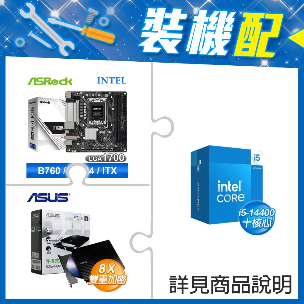 ☆裝機配★ i5-14400F+華擎 B760M-ITX/D4 WiFi ITX主機板+華碩 SDRW-08D2S-U 外接式燒錄機《黑》