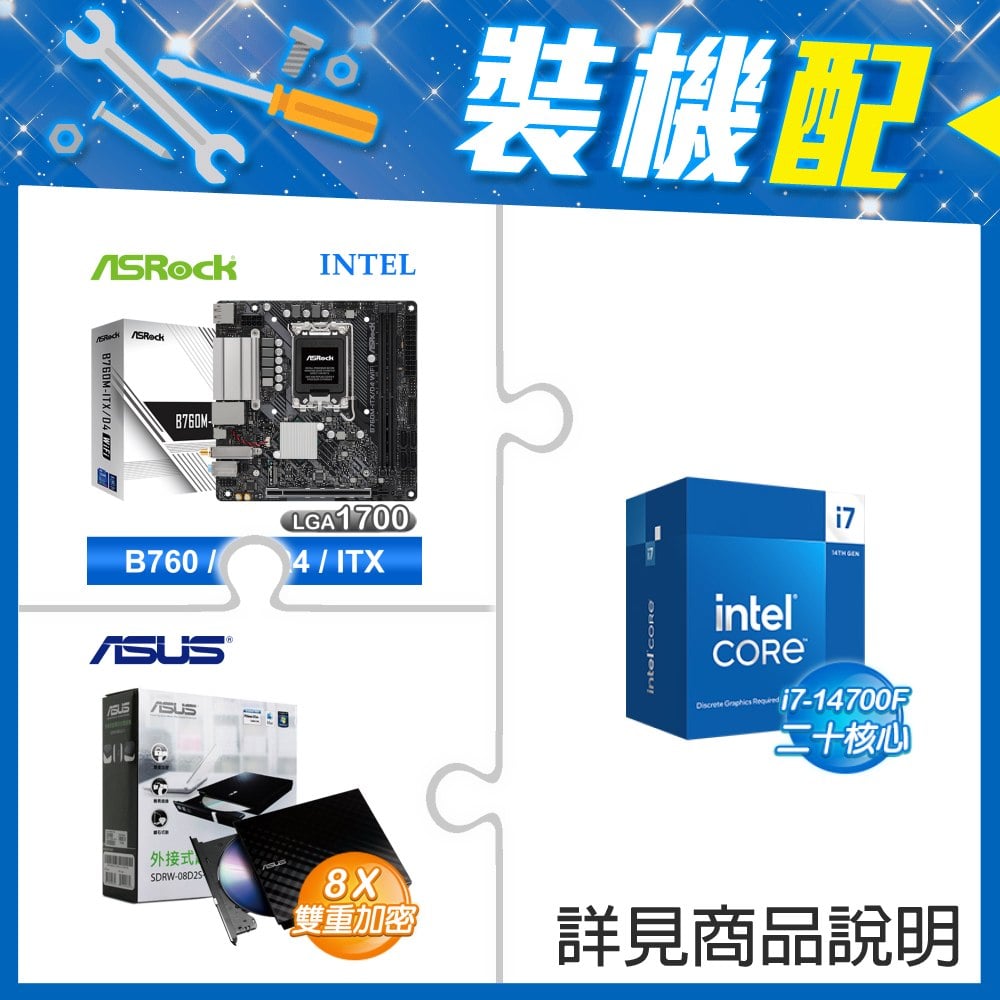 ☆裝機配★ i7-14700F+華擎 B760M-ITX/D4 WiFi ITX主機板+華碩 SDRW-08D2S-U 外接式燒錄機《黑》