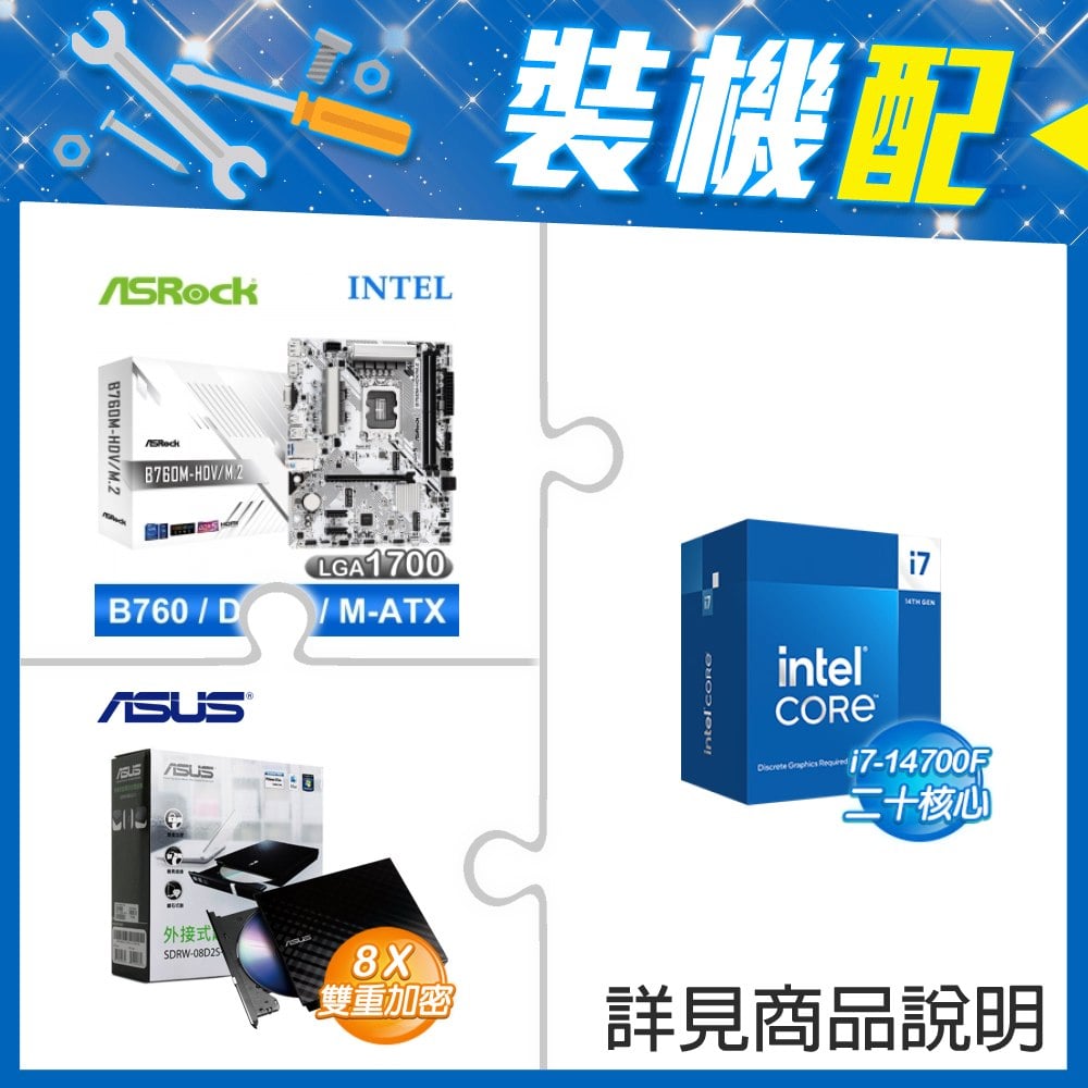 ☆裝機配★ i7-14700F+華擎 B760M-HDV D5 MATX主機板+華碩 SDRW-08D2S-U 外接式燒錄機《黑》