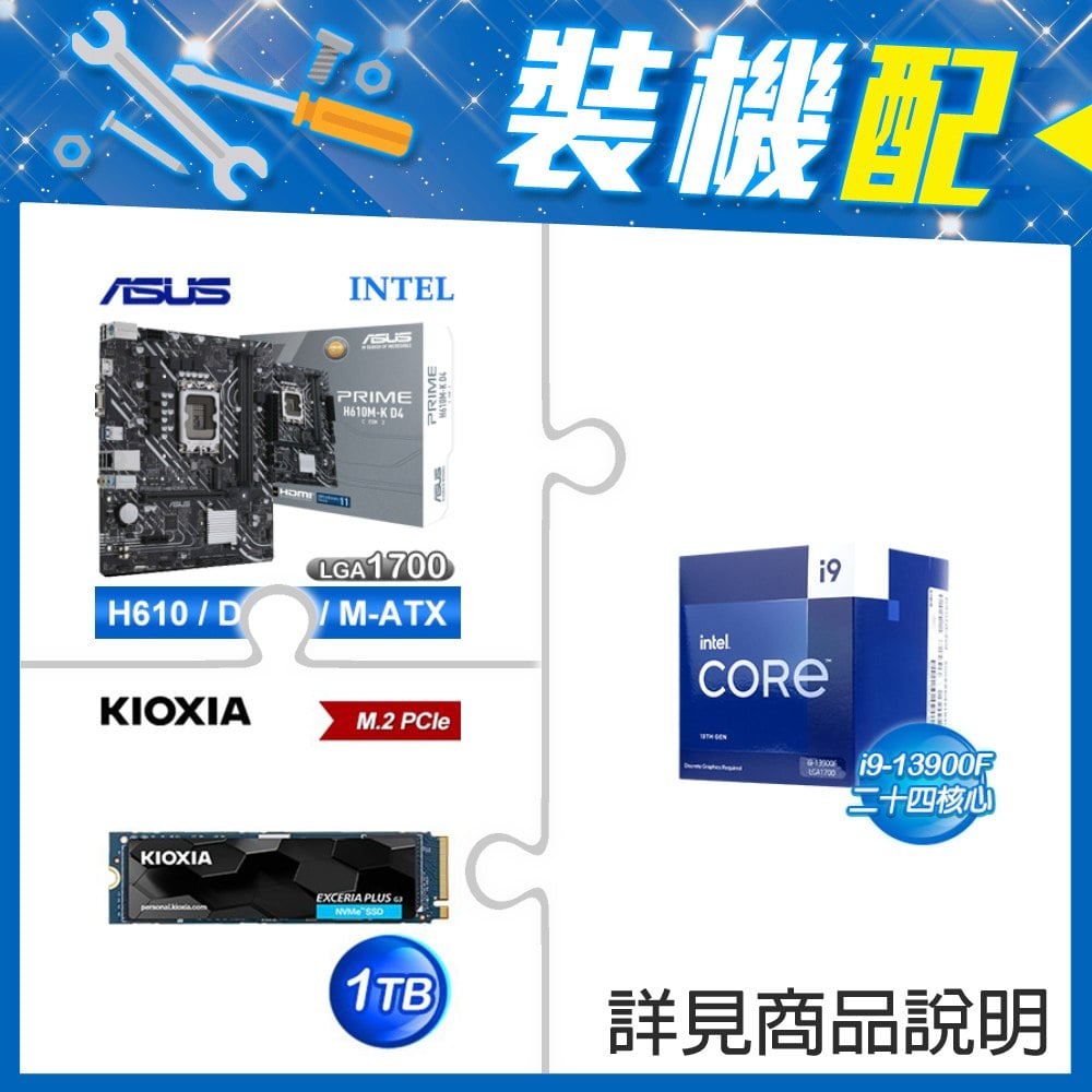 ☆裝機配★ i9-13900F《無內顯》+華碩 PRIME H610M-K D4-CSM M-ATX主機板+鎧俠 EXCERIA PLUS G3 1TB PCIe Gen4x4 SSD