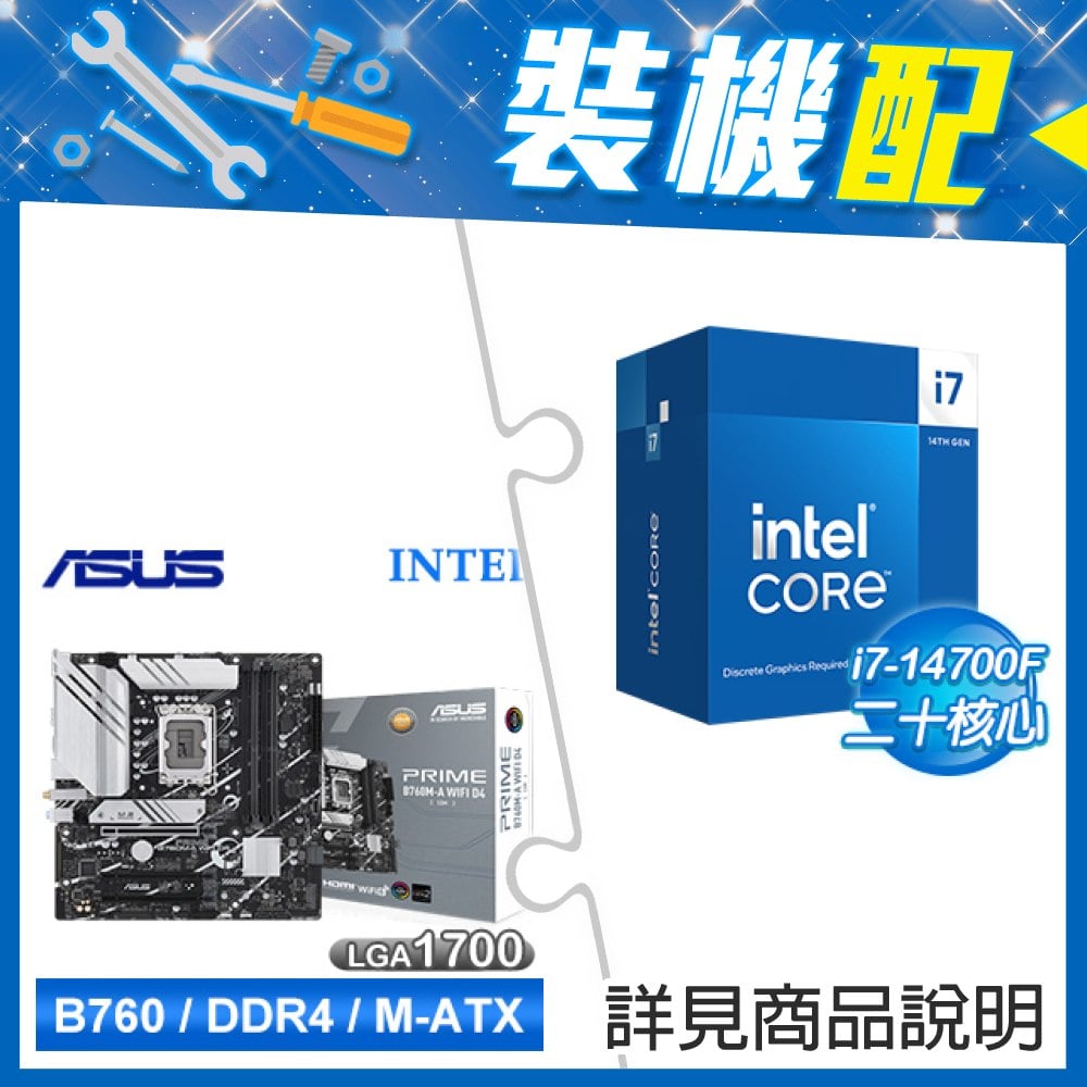 ☆裝機配★ i7-14700F+華碩 PRIME B760M-A WIFI D4-CSM 主機板
