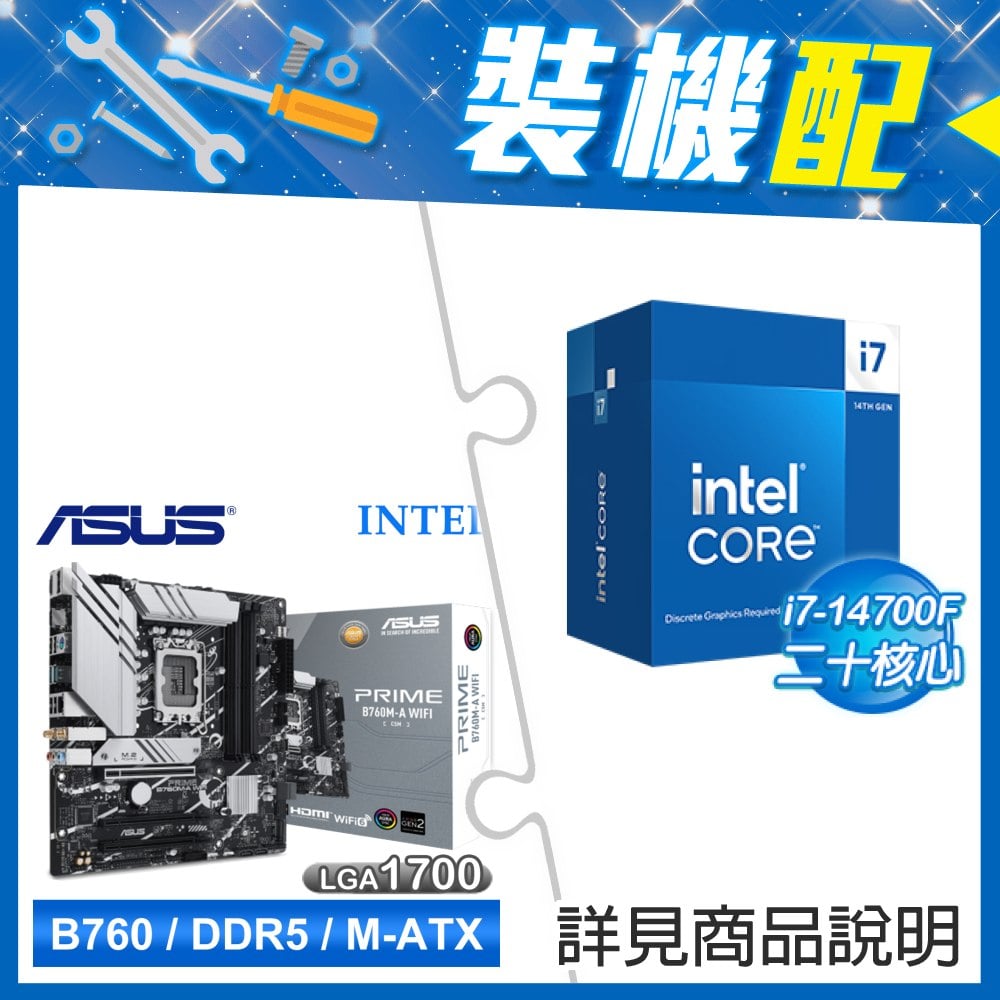 ☆裝機配★ i7-14700F+華碩 PRIME B760M-A WIFI-CSM D5 M-ATX主機板