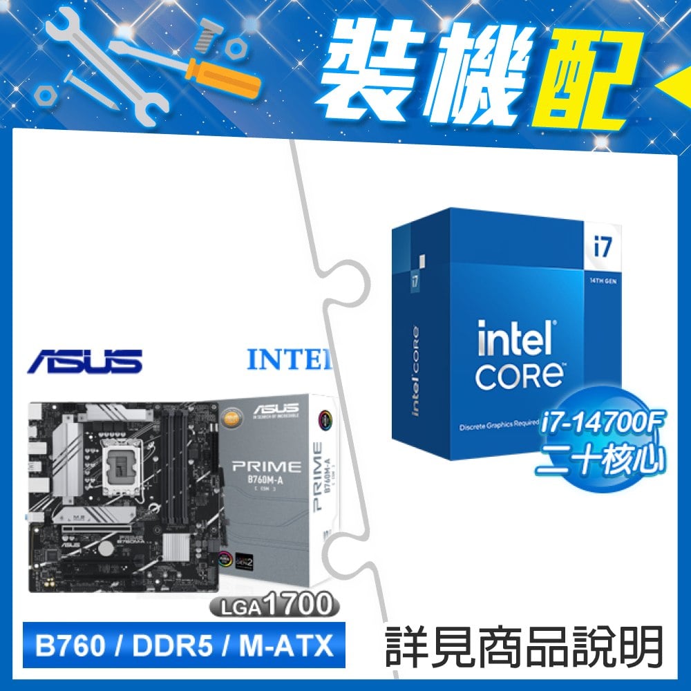 ☆裝機配★ i7-14700F+華碩 PRIME B760M-A-CSM D5 M-ATX主機板