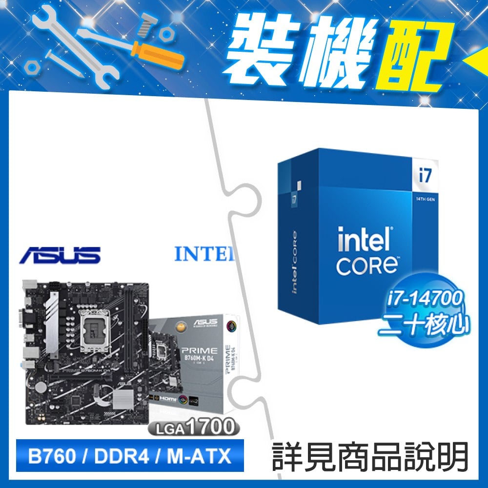 ☆裝機配★ i7-14700+華碩 PRIME B760M-K D4-CSM 主機板
