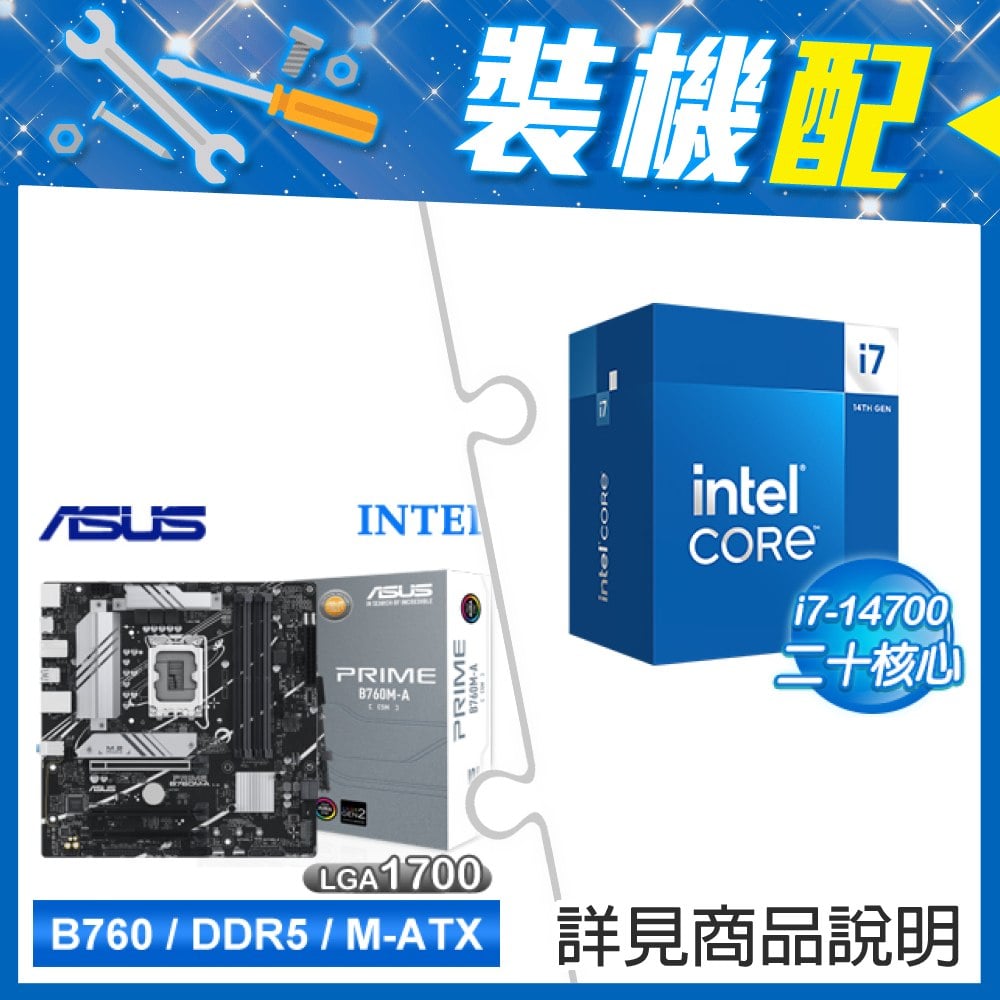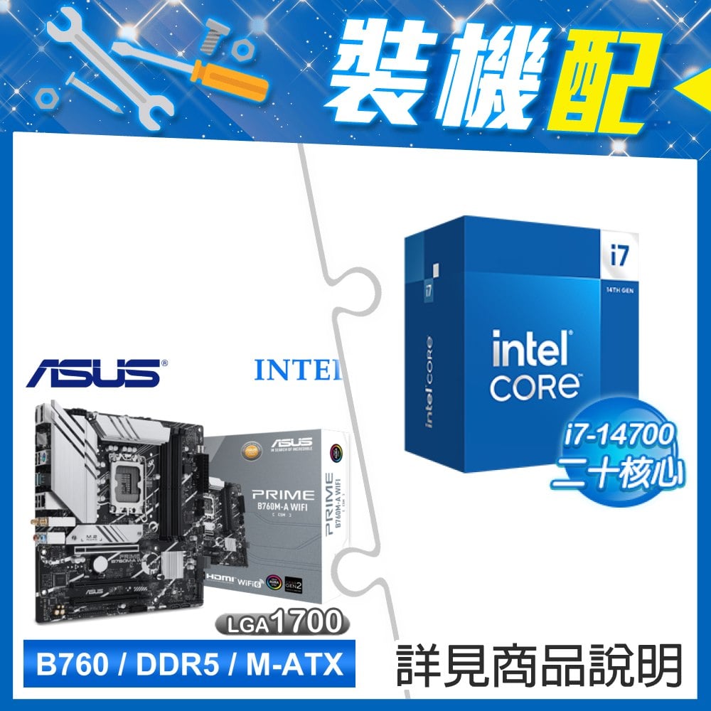 ☆裝機配★ i7-14700+華碩 PRIME B760M-A WIFI-CSM D5 M-ATX主機板